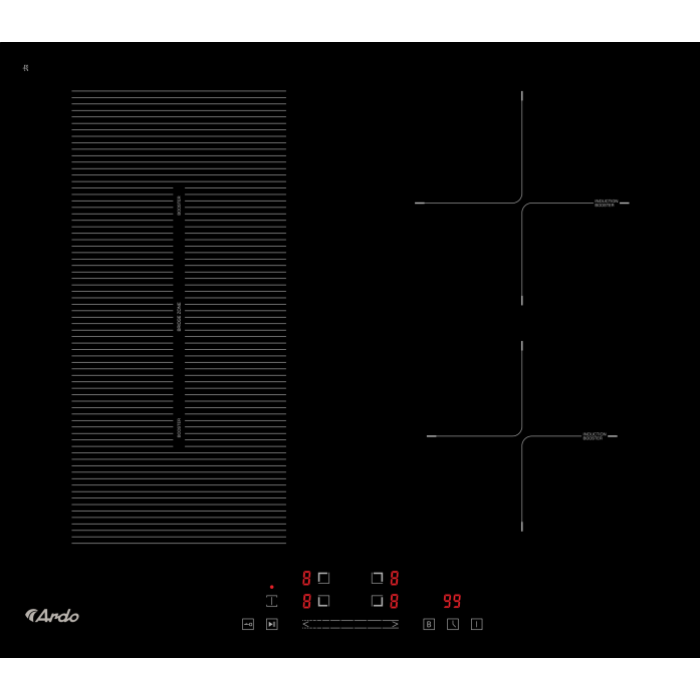 Тип панели: ИндукционнаяКонструкция панели: НезависимаяМинимальная толщина столешницы: 30 ммИндикация: Остаточное теплоМощность варочной панели: 7200 ВтОсобенности варочной панели: Индукционный мост Сенсор наличия посуды: ДаСистемы защиты: АвтоотключениеТип управления: СенсорноеМатериал рабочей поверхности панели: СтеклокерамикаУстановка: СтандартнаяНаличие рамки: НетКоличество конфорок: 4Размеры ниши для встраивания панели: 560x490 ммЦвет: ЧерныйРазмеры: 590x520x56 ммВес товара: 7,73 кг